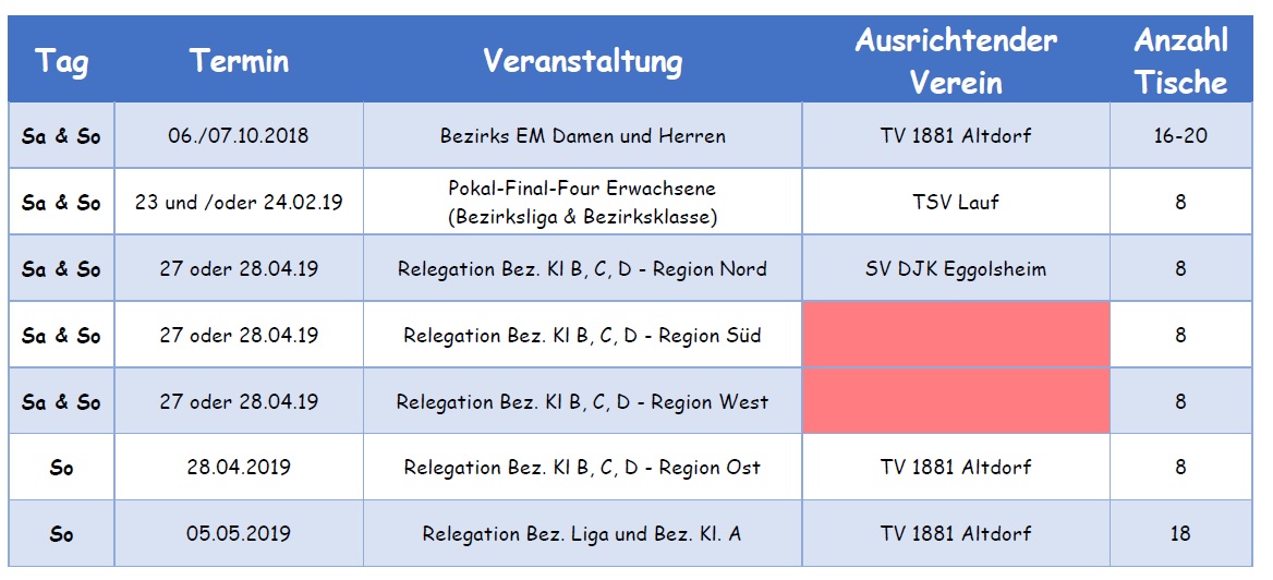 Wenn ihr euch die Übersicht anseht, dann seht ihr gleich, dass uns für zwei Veranstaltungen noch ein Ausrichter fehlt.