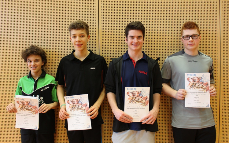 Im gleichen Modus wie die Schüler B spielten die 12 Jungs in der Altersklasse Jungen ihre Sieger aus. Felix Kullig vom TSV Ansbach gab in seinen 8 Spielen keinen einzigen Satz ab und dominierte seine Altersklasse. Auf den weiteren Plätzen folgten Kevin Braun (TSV Rothenburg) und Daniel Binder (TSV Dinkelsbühl).