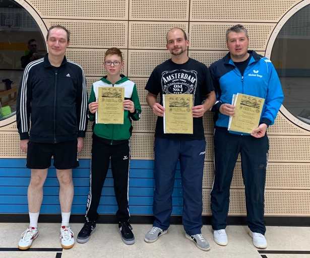 Erfreulich aus Sicht des Ausrichters, dass sich mit Rudolf Stierhof in der Herren C-Klasse und Thorsten Klenk in der D-Klasse zwei Spieler des TTV Neustadt/Aisch den Titel eines mittelfränkischen Meister sichern konnten.