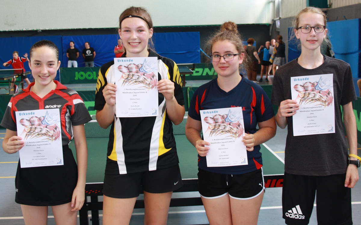 Bei den Jungs erreichte Tobias Schumacher vom Post SV Nürnberg einen hervorragenden dritten Platz. Auch die folgenden vier Plätze gingen an den Norden Mittelfrankens. Bei den Mädchen reichte es ebenfalls nicht für den Platz ganz oben auf dem Podest, da Lea-Marie Schultz Ihre ganze Klasse zeigte und nur vier Sätze abgeben musste. Dafür landete auf dem zweiten Platz mit Nicole Dorsch vom FC Großdechsendorf und auf Platz vier Amelie Grauer vom ASV Möhrendorf.