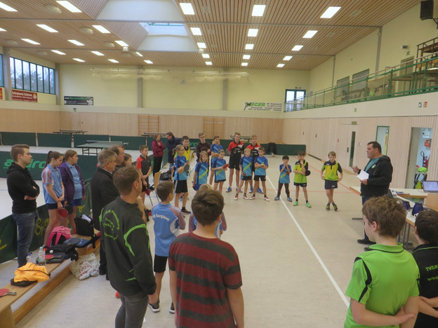 Die A-Schüler spielten zu viert im Werner-Scheffler-System mit zwei Eröffnungs-doppeln und maximal zwölf Einzeln, bis ein Team den achten Siegpunkt erreicht hatte. Die B-Schülerinnen und -Schüler zu dritt im Braunschweiger System mit einem Eröffnungsdoppel und neun Einzeln, die alle ausgespielt wurden.