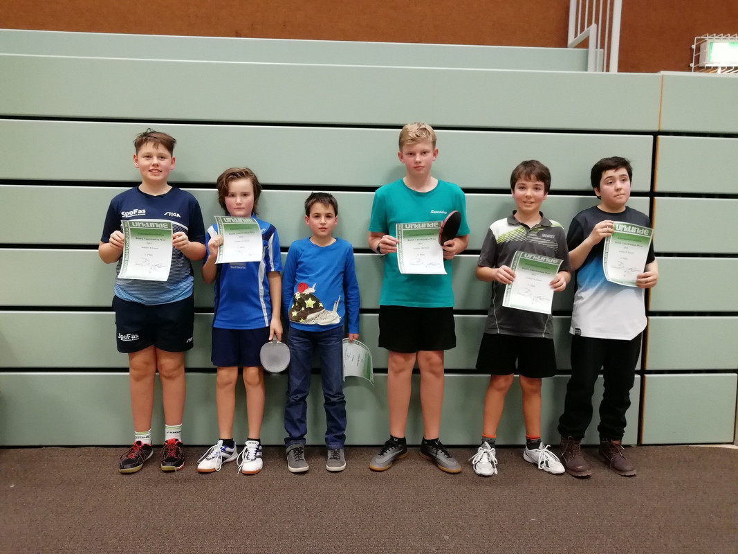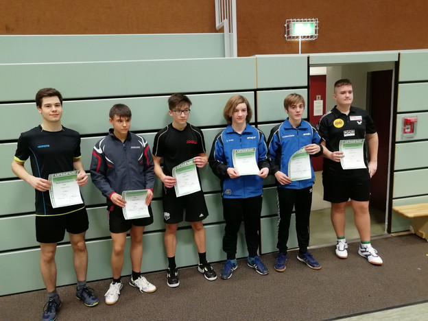 Bei den Schülern B sicherte sich Jan Dittel (TV Hofstetten) mit 4:1 Platz eins und 13:3 Sätzen. Rang zwei holte sich Emil Philippin (TuS Damm) mit 4:1 und 12:7. Siegerin bei den Schülerinnen B wurde Elena Przyklenk (Viktoria Wombach) mit 6:0 Zählern.