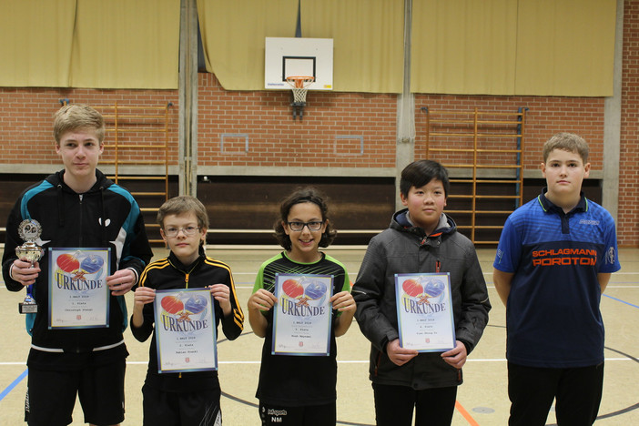 Bei dieser enormen Dominanz ist es kaum verwunderlich, dass gleich mehrfach ein Erdinger Spieler bzw. eine Erdinger Spielerin auf dem Siegerpodest zu finden war. Allen voran konnte sich Christoph Stangl vom TSV Erding 1862 den Platz ganz oben sichern. Bis auf zwei Spiele, in denen er in den Entscheidungssatz musste und dabei die Nerven behielt, dominierte er das Feld an diesem Tag und konnte seine restlichen Spiele allesamt mit 3:0 gewinnen. Platz 2 und 3 gingen an Fabian Frankl vom DJK SV Furth und Noah Maysami vom FC Schweitenkirchen 1946.