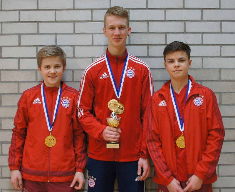 Sehr spannened verlief das Finale Verbandsebene Jungen zwischen FC Bayern München und SpVgg Thalkirchen. Vier Matches wurden erst im 5. Satz entschieden. Nachdem der FC Bayern zunächst mit 0:2 zurücklag, konnten Louis Bambach, Thomas und Paul Haenel das Spiel drehen und mit 4:2 das Finale gewinnen.