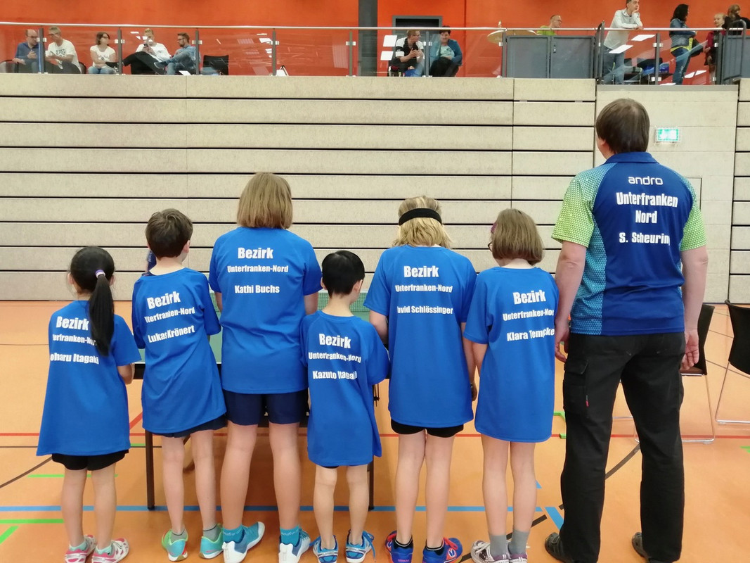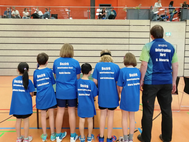 In sein Team aus Talenten der Jahrgänge 2008 und jünger hatte der Bezirk die Jungen David Schlössinger (TSV Bad Königshofen), Kazuto Itagaki (TSV Bad Königshofen) und Lukas Krönert (DJK Gänheim) und die Mädchen Koharu Itagaki (TSV Bad Königshofen), Katharina Buchs (TSV Bad Königshofen) und die frisch gebackene bayerische Mini-Meisterin Klara Tempcke (TSV Bad Königshofen) berufen. Und alle waren dem Ruf gefolgt. Damit war Unterfranken-Nord Turnierfavorit. Und nur so konnte der schöne Erfolg gelingen.