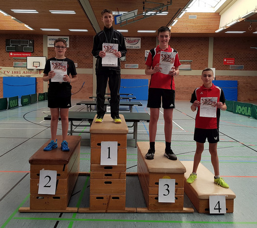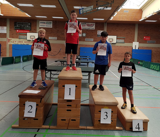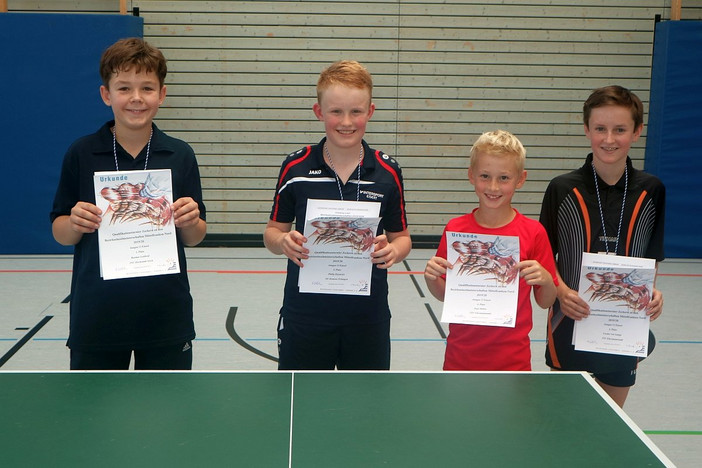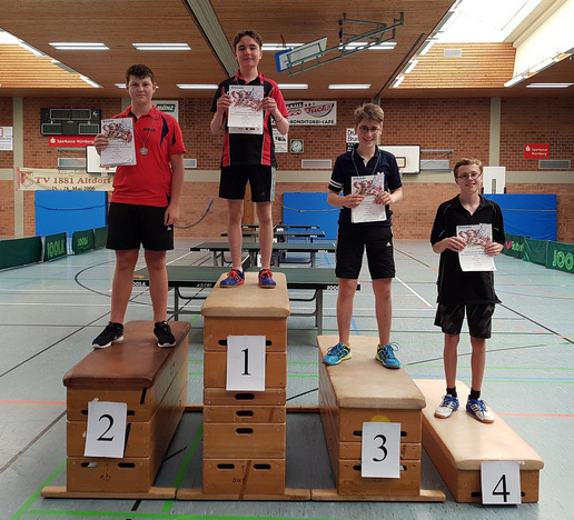 Sieger bei den Jungen 13 in Zeckern wurde Rasmus Leithold (TTC Höchstadt/Aisch) vor Cosmo von Lange (TSV Ebermannstadt) und Philip Heynickx (SG Siemens Erlangen).