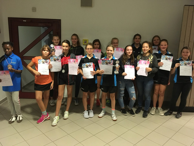 Carina Neubert vom TV Prittriching setzte sich bei den Mädchen 15 durch, mit auf’s Stockerl schafften es Veronica Sebiashuk (SV Esting) und Katja Schulz (TSV Gilching-Argelsried). Im Doppel belegten Carina Neubert und Katja Schulz den ersten Platz.