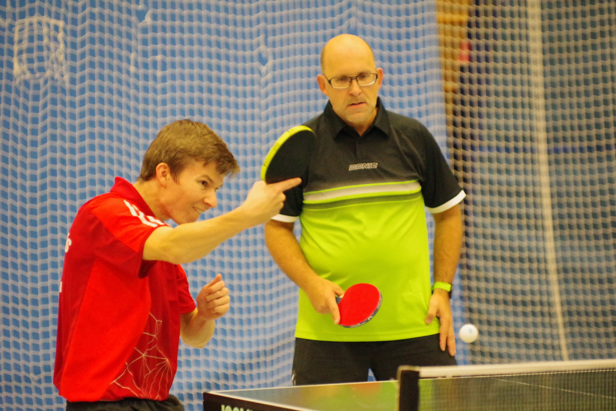 Seine starken Auftritte unterstrich Marco Stöcklein damit, dass er auch im Doppel mit seinem Vereinskameraden Stefan Wittmann auf dem Podest ganz oben stand. Beide hatten das Finale gegen das Duo Petrick/Feulner (Gaustadt/Oberwallenstadt) nach Verlust des ersten Satzes für sich entschieden (3:11, 12:10, 11:6, 11:6).