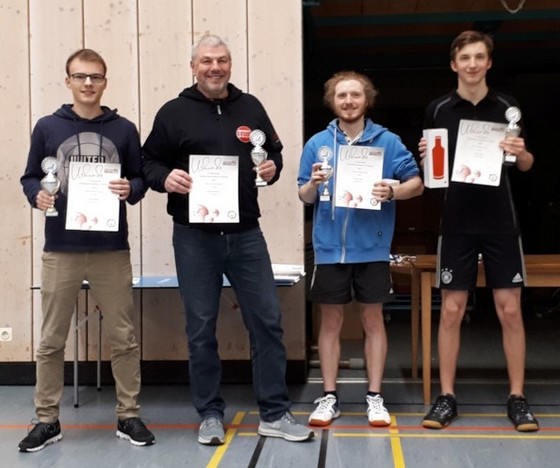 In einer der zwölf Gruppen musste es sich zuerst gegen die drei andren Gruppenpartner durchsetzen. Das gelang Oli ganz knapp, denn die ersten drei der Gruppe hatten jeweils ein Spielverhältnis von 2:1 und so mussten die Sätzen entscheiden. Und da hatte Oli die Nase hauchdünn vorne und erreichte als zweiter die Endrunde.