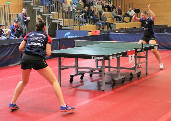 Wie schon am Freitag ruhten die Hoffnungen erneut auf Naomi Pranjkovic. Und diese schien sie gegen Alina Nikitchanka – obwohl sie zunächst mit 0:2 Sätzen im Rückstand lag – erfüllen zu können. Denn nach dem Ausgleich zum 2:2 führte sie im entscheidenden fünften Durchgang beim Seitenwechsel mit 5:3 und baute diesen Vorsprung sogar auf 7:3 aus. Dass die Stimmung jetzt auf dem Siedepunkt war, schien verständlich zu sein. Aber auch Pranjkovic gelang der Punkt nicht. Nach dem Ausgleich zum 8:8 geriet sie plötzlich in Rückstand, konnte aber zunächst drei Matchbälle ihrer Gegnerin abwehren. Nach dem 11:11 kassierte sie zwei Punkte zur 11:13 Niederlage. Das Tor zum Halbfinale, das man anfangs weit aufgemacht hatte, war plötzlich wieder zu. Hingegen brachen bei den Gästen aus Schwabhausen alle Dämme. Nun trifft man sich also am Dienstag ein drittes Mal, allerdings dann wieder in Schwabhausen.