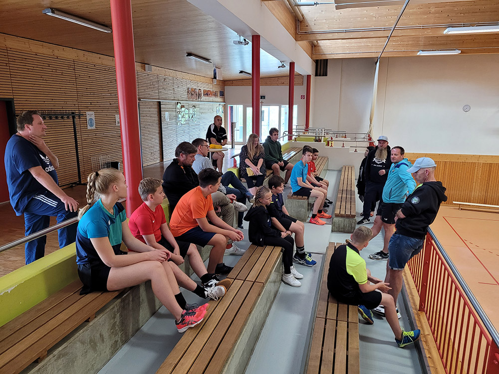 In dieser ersten Trainingseinheit waren insgesamt acht Teilnehmer/innen am Start. Nach einem kurzen Kennenlernen, Warm-Up und Einspielen, ging es dann am Balleimer und bei individuellen Übungen zur Sache. Ein Auf- und Abstiegsturnier rundeten das erfolgreiche Training ab.
