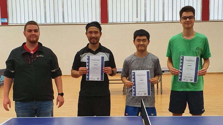 Auch in dieser Saison war die Tischtennisabteilung des TV 1880 Nabburg Gastgeber für das Verbandsbereichsranglistenturnier Nordost. Dabei kämpften Spielerinnen und Spieler aus den Bezirken Oberfranken-West, Oberfranken-Ost, Mittelfranken-Nord und Oberpfalz-Nord um Preisgeld und Qualifikation zum Verbandsranglistenturnier in Putzbrunn. Leider meldeten nur zwei Damen, die im direkten Duell die Platzierung ausspielten. Hier behielt Stella Ziegler vom TV Altdorf gegen ihre Namensvetterin Sophia Ziegler (SV Hahnbach) in einem engen Match mit 11:8, 13:11 und 13:11 die Oberhand. Auch die Teilnehmerzahl der Herrenkonkurrenz ließ zu wünschen übrig. Lediglich 14 Spieler ermittelten im „Schweizer System“ über sechs Runden den Turniersieger. Dieser hieß am Ende wenig überraschend Akito Itagaki. Der 17-Jährige, der in der kommenden Saison für die SpVgg Effeltrich in der 3. Bundesliga aufschlägt und auch schon Einsätze in der 1. Liga für Bad Königshofen absolvierte, ging mit einem QTTR-Wert von 2137 in das Turnier. Erwartungsgemäß gewann Itagaki seine sechs Partien, wobei ihm die tapfer kämpfenden Gegner immerhin insgesamt drei Sätze abnehmen konnten. Mit einer Bilanz von 5:1-Siegen belegte An Nguyen von der SpVgg Erlangen den zweiten Platz. Danach folgten drei Spieler mit je vier Siegen, so dass die Buchholzzahl über die Platzierung entscheiden musste. Hier hatte Jonas Dinter (TTSC Kümmersbruck) knapp die Nase vorn und komplettierte damit das Siegerpodest als Dritter. Auf den Rängen vier und fünf landeten Alexander Burkhard (SpVgg Erlangen) und Paul Hofmann (TTC Rugendorf). Über den sechsten Platz musste gar das Los entscheiden. Tim Ficht und Hannes Andritzky hatten am Ende nämlich neben der gleichen Spielbilanz auch noch die identische Buchholzzahl. Schließlich hatte Ficht vom gastgebenden TV Nabburg das Glück auf seiner Seite und wurde Sechster. Er steht damit wie Dinter, Burkhard und Hofmann auf der Nachrückerliste für Putzbrunn. Direkt qualifiziert sind bei den Damen Stella und Sophia Ziegler und bei den Herren Akito Itagaki und An Nguyen. Diese vier Spieler teilten sich auch das Preisgeld von insgesamt 450 Euro.