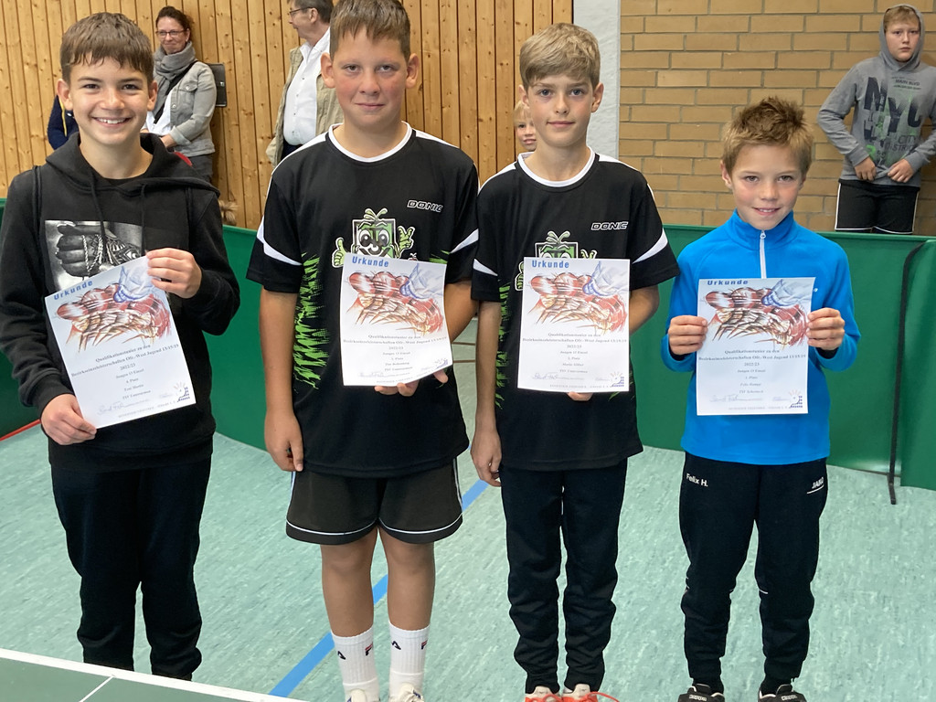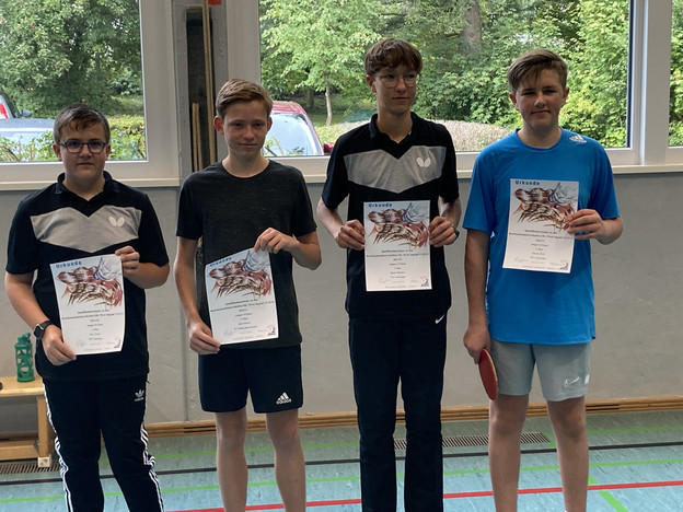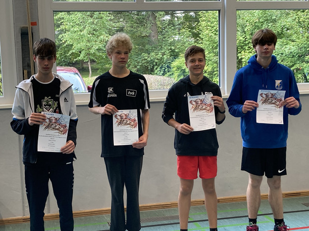 AK 15: 1. Ben Fischer (Unterlauter), 2. Benjamin Kneitz (Unterlauter), 3. David-Niklas Hoh (Unterlauter), 4. Ben Bößl (Unterlauter), 5. Felix Ludwig (Unterlauter), 6. Raphael Bittorf (TV 07 Wiesenfeld), 7. Andrei Pop (TTC Wohlbach), 8. Lenni Fischer (Unterlauter), 9. Elias Gemeinhardt (Wohlbach). Die ersten fünf sind qualifiziert.
