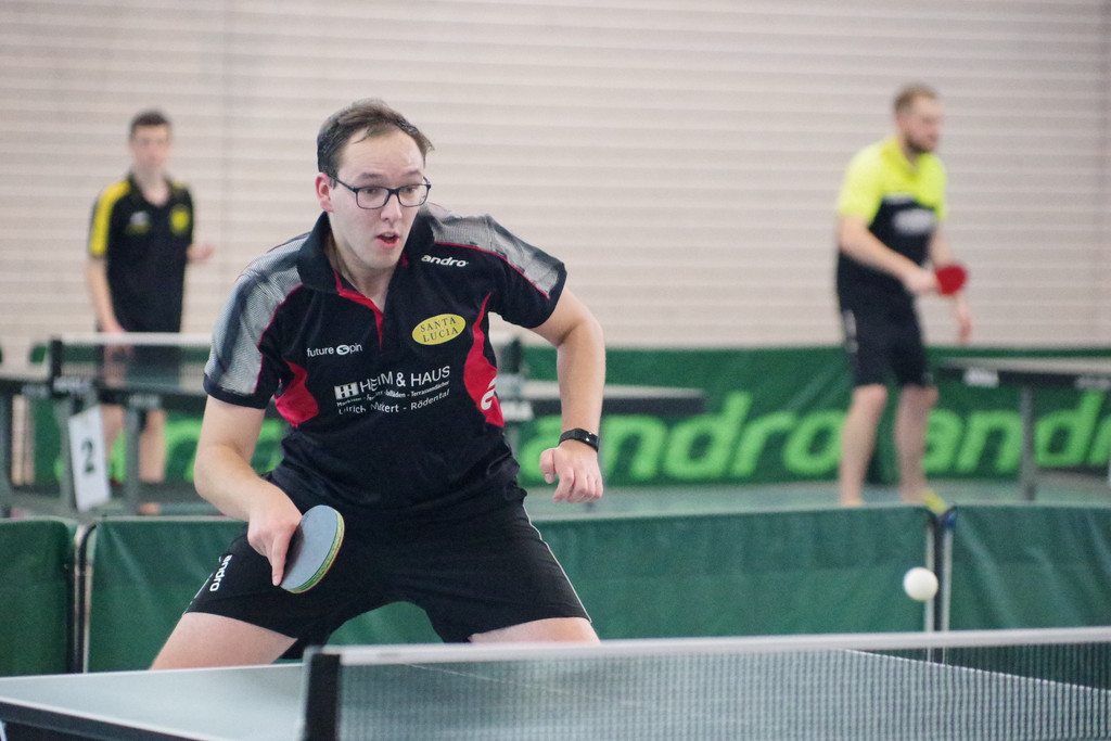 Nicht erfolgsversprechend gestaltete sich für die Einheimischen der Auftakt, denn beide Eingangsdoppel, davon eines aber erst im fünften Durchgang, gingen den Bach hinunter. Im ersten Tageseinzel zwang zwar Michael Bozek nach drei Sätzen Markus Trummer in die Knie (12:10, 11:9, 11:4), da jedoch der mit allen Wassern gewaschene Gäste-Spitzenspieler Dariusz Szlubowski gegen Julian Heinrichs nicht viel anbrennen ließ, war der Zwei-Punkte-Vorsprung für die Mittelfranken wieder hergestellt. Fabian Markert hatte Claudia Trummer gut im Griff auf verkürzte auf 2:3. Doch nun kam es ganz dick für das Heimteam. Zunächst war es Gabriel Funk, der seine 1:0-Satzführung nicht ins Ziel brachte und schließlich musste auch Bozek gegen den ungeschlagen gebliebenen Szlubowksi Federn lassen. Nach der damit einhergehenden 5:2-Führung für Eschenau, hatte der FC den Auswärtserfolg schon vor den Augen. Doch die Hausherren warfen nun alles in die Waagschale, um die zweite Saisonniederlage zu vermeiden. Zunächst war es Heinrichs, der ohne Satzverlust blieb und den dritten Zähler für den TSV verbuchte. Dann war es Mannschaftsführer Markert, der Detlef Kirchner auf die Verliererstraße schickte, und schließlich war es Funk der nach dem 1:1-Satzgleichstand mit einem 11:8 und 11:7 den viel umjubelten Punkt zum Unentschieden erschmetterte.