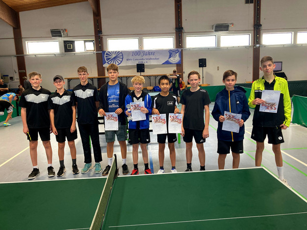 Einzel-Ergebnisse: 1. Jakob Erhardt (TTC Geutenreuth), 2. Benedikt Spindler (RMVC Strullendorf), 3. Moritz Müller (TSV Cortendorf), 4. Oskar Fiedler (TSV Untersiemau), 5. Fabian Seelig (Strullendorf), 5.6. Kolja Klemt (TV Coburg-Ketschendorf), 7. Benjamin Thörmer (TSV Untersiemau), 8. Nikolai Evseichev (TSV Unterlauter).