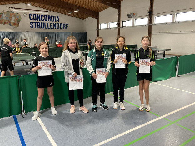 Unter den sieben Mädchen blieb die Siegerin Sophia Barnickel in fünf Begegnungen ohne Satzverlust. Lediglich im entscheidenden Treffen gegen die bis dahin ebenfalls unbezwungen gebliebene Nina Barnickel hatten sie in einem Durchgang das Nachsehen (11:4, 11:6, 12:14, 11:7). Im Doppel hievte sich allerdings Nina Barnickel mit Emma Hellmuth auf den ersten Platz.