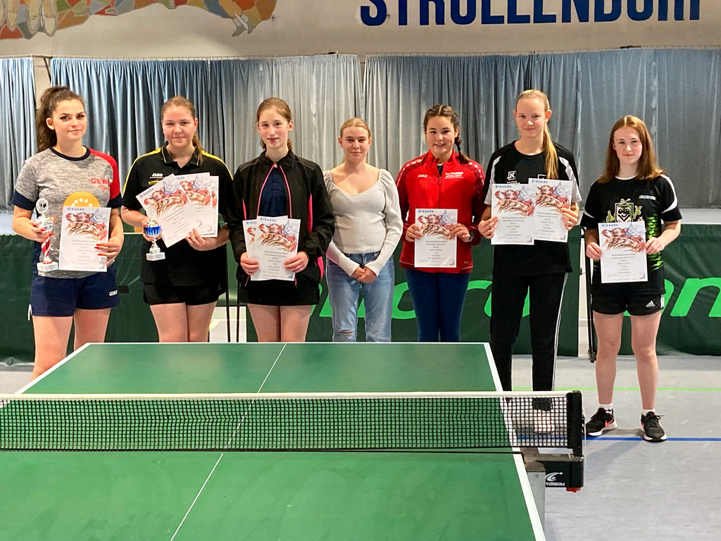 Einzel: 1. Sophia Barnickel (Geutenreuth), 2. Nina Barnickel (FC Adler Weidhausen), 3. Anja Schmitt (Ketschendorf), 4. Lisa Cogan (Untersiemau), 5. Emma Hellmuth (TTC Unterzettlitz), 6. Laua Wölfert (TSV Bad Rodach), 7. Emillia Groth (Unterlauter).