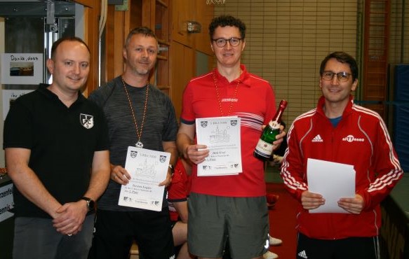 Trotz einer Niederlage gegen den späteren Vierten Christian Bujnoch (SV Hahnbach) gewann Johannes Bruckner (DJK Ettmannsdorf) die Konkurrenz der Senioren AK 40-60 Klasse B. Aufgrund des besseren Satzverhältnisses holte sich Martin Hölzl (SV Altendorf) den zweiten Platz. Als punktgleicher Dritter bleibt Jürgen Hoffmann (ASV Fronberg), der Hölzl mit 3:1 besiegt hatte, nur die Hoffnung als Nachrücker noch nach Vohburg fahren zu können.