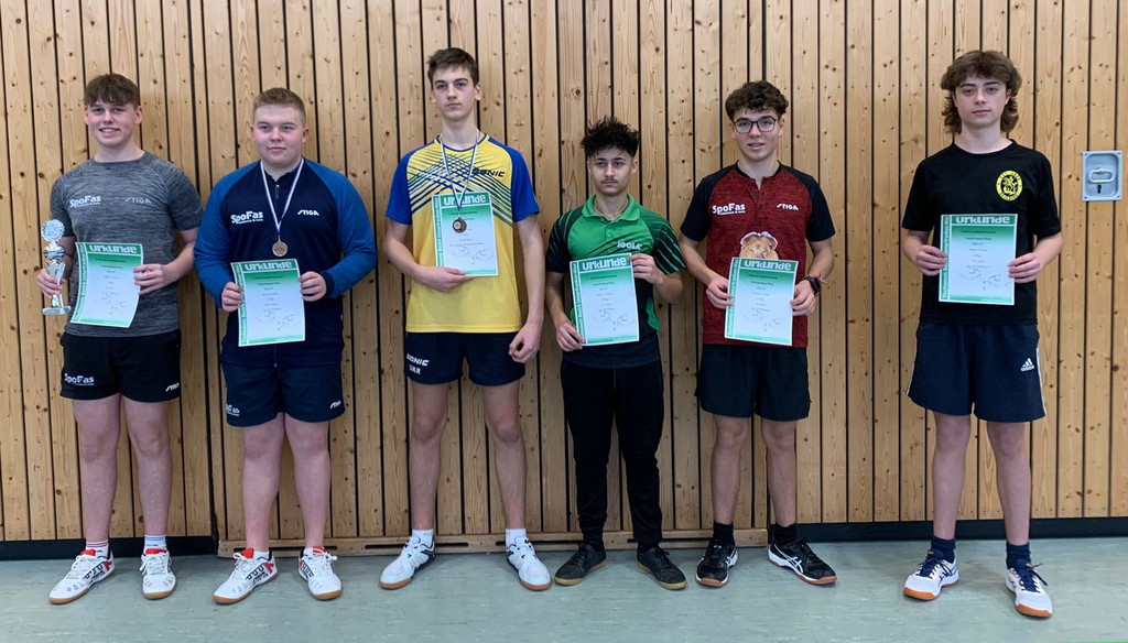 Bei den Jungen 15 setzten sich die Favoriten durch. Maxim Kammerzell (TuS Aschaffenburg-Damm) gewann das direkte Duell gegen Noah Stein (TTC Schimborn) mit 3:2. Den dritten Platz belegte Mathis Seitz (TSV Keilberg).