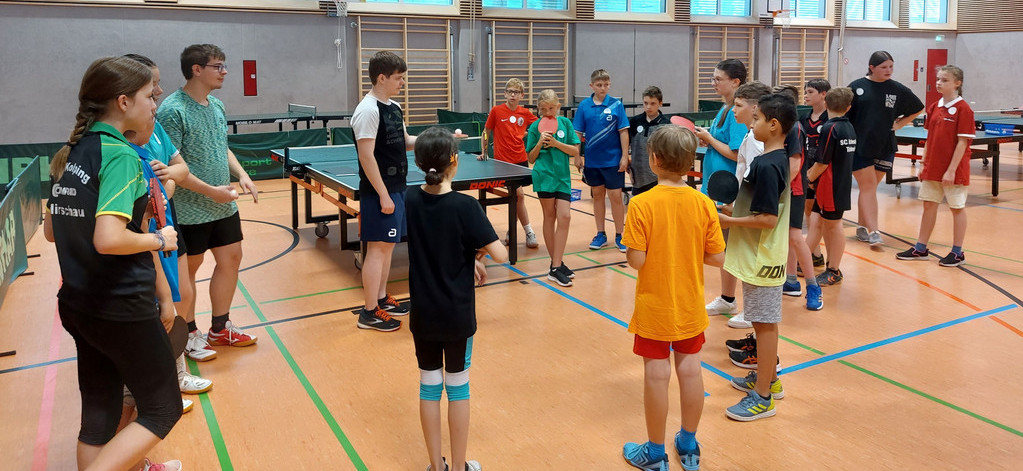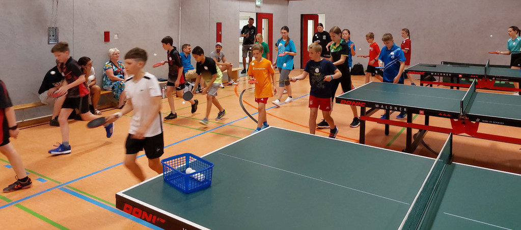 Mit 18 Mädchen und Jungen der Jahrgänge 2011 und jünger aus sieben Vereinen war der Sichtungslehrgang zur Talentschmiede des Bezirks Oberpfalz-Nord in Altenstadt/WN sehr gut besucht. Unter Leitung der Trainer Tim Stopfer und Tobias Breu übten die Teilnehmer/innen Vorhand/Rückhand-Rückschlag, Unterschnitt, spielten ein Auf-Und-Ab-Turnier und lernten Dehn- und Atemübungen. Bezirksjugendwartin Katja Götz und Bezirksfachwart für Nachwuchsangebote Ben Lingl freuten sich über die rege Teilnahme und das gute Niveau der Spieler/innen, für die nun ab Oktober die Talentschmiede starten kann (jeweils sonntags, an wechselnden Orten).