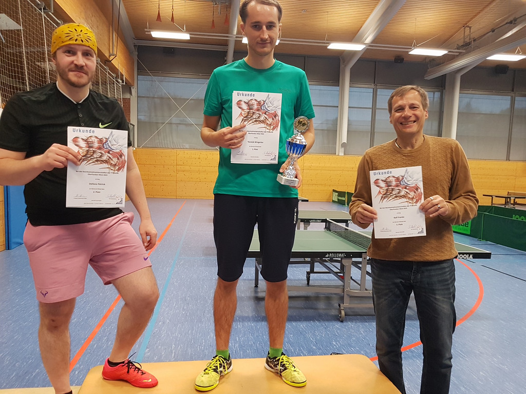 Bezirksmeister in der Leistungsklasse B wurde Philipp Weiß (TTC Tüschnitz), in der Klasse C Harald Dillinger (TV Schwürbitz) und in der D Yannick Wingerter (FT 1900 Bamberg).