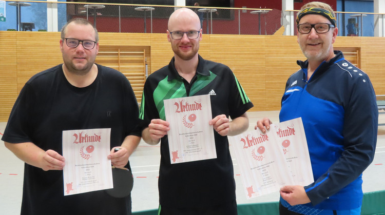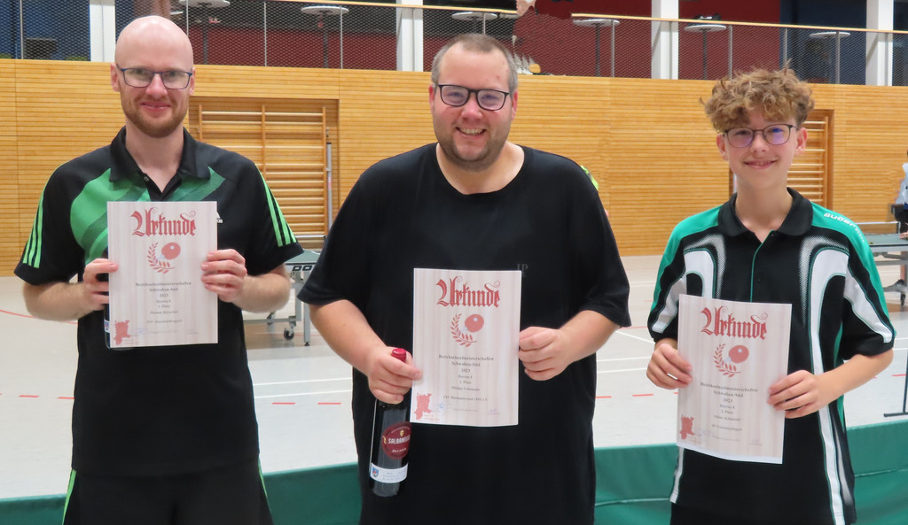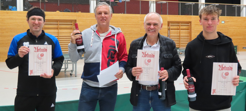 Gegen 13 Uhr griff die Herren-C Klasse mit ein, gerade einmal 12 Teilnehmer durften sich in dieser Klasse messen. Während die Doppel recht zügig über die Bühne ging, dauerte es doch schließlich bis 17:45 Uhr, bis die ersten Einzelergebnisse vorlagen. In der E-Klasse setzte sich sogar ein Jugendlicher bis ins Finale durch. Auch in der D-Klasse setzte sich nicht der TTR-Wert-Stärkste durch.