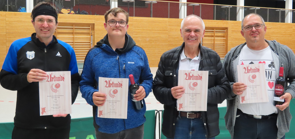 Auch in der C-Klasse gelang es den Favoriten nicht, sich durchzusetzen. Am Ende gegen genau 20 Uhr ging trotzdem der Titel nach Untermeitingen durch Roman Hutfluss, wie auch bereits in der D-Klasse durch Stefan Dumalski. Auch den Doppel Titel kassierten sie ein.
