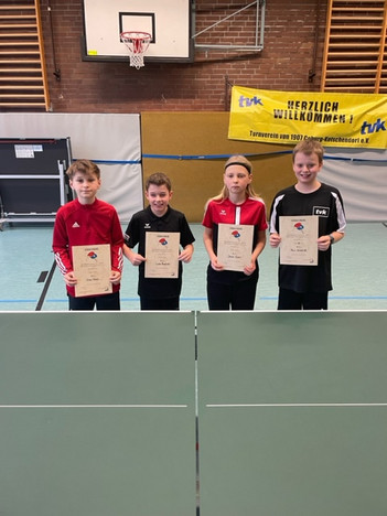 Jungen 15: 1. Paul Schmidt (TV Coburg-Ketschendorf) 13:5 Sätze/4:1 Spiele, 2. Jakob Krahl (TV 07 Wiesenfeld) 13:6/4:1, 3. Luka Radicek (TTG Neustadt-Wildenheid) 13:8/3:2, 4. Elias Haas (TSV Schlüsselfeld) 10:10/3:2, 5. Nick Schäfer (TSV Unterlauter) 6:12/1:4, 6. Björn Hanns (TSV Schlüsselfeld) 1:15/0:5.