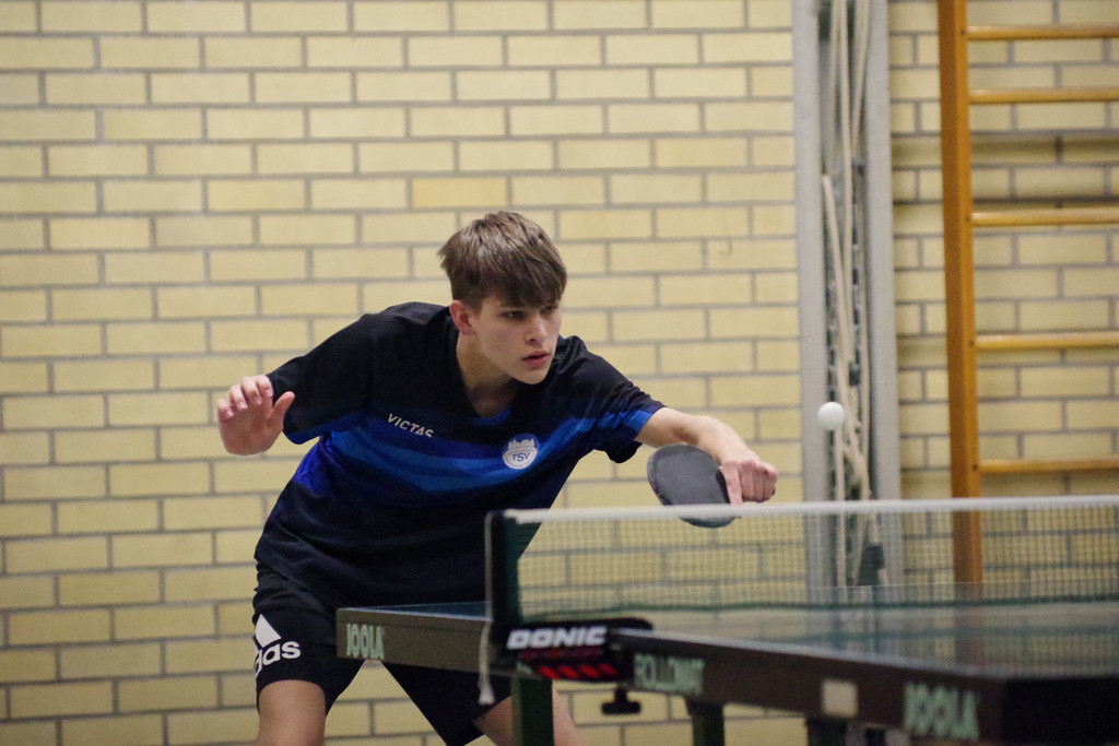 Die weiteren Platzierungen: 4. Jonas Vollrath (TSV Untersiemau), 5. Maxim Hanf (TV Wiesenfeld), 6. Lennart Herold (TTC Geutenreuth), 7. Bislim Dvorani (TSV Schlüsselfeld), 8. Julian Hahn (TTC Schmeilsdorf), 9. Jannik Demuth (TTC Rödental). hf