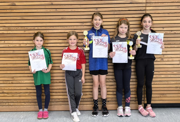 Bei den Mädchen führte in diesem Jahr kein Weg vorbei an Elis Küller vom TV Barbing. Mit kompromisslosem Angrisstischtennis ließ sie ihre Gegnerinnen keine Chance und sicherte sich sourverän das Ticket für die Bayrische Meisterschaft. Den zweiten Platz schnappte sich Lisa von Massow, die das letztlich entscheidende Spiel gegen ihre Vereinskameradin Lina Eisenreich mit 3:1 gewann. Diese wiederum konnte sich gegen Antonia Beer vom FC Rötz durchsetzen, die erst Achtjährige war dafür die einzige, die der Turniersiegerin einen Satz abluchsen konnte. Auf dem fünften Platz kam mit Laura Ibler von der DJK SV Pilsach ebenfalls eine erst Achtjährige. Die beiden Jüngsten im Teilnehmerfeld zeigten aber bereites ihr Talent und dürften in den nächsten Jahren ein gewichtiges Wort um den Titel mitreden.