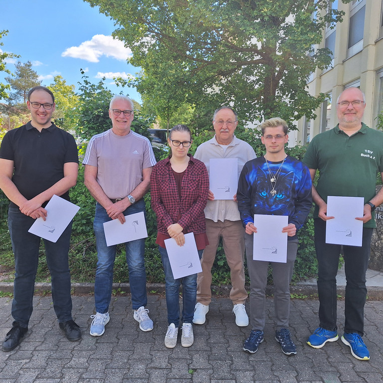 BTTV-Ehrennadel in Silber - Anna Schmidt (TTC Thann), Silber mit Gold - Fabian Markert (TSV Untersiemau), Gold mit großem Kranz - Bernd Markert (Rödental) und Thomas Bürger (TSV Untersiemau), Verdienstnadel in Silber - Alexander Bauer (SG Roth-Main), Matthias Hugle (TSV Buch am Forst) und Kai Rommel (SV Frensdorf), Gold - Ulrike Baier (TTC Strössendorf) und Roland Kalb (TTC Kaltenbrunn).