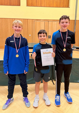 Jungen 19, in Kleinwallstadt-Hofstetten, Endstand: 1. TV Hofstetten 6:0 Punkte, 2. TTC Schimborn 4:2, 3. BSC Schweinheim 2:4, 4. TTC Eichenbühl 0:6. - Der TV Hofstetten spielte mit: Paul Zöller, Lenny Kreis und Jan Dittel.
