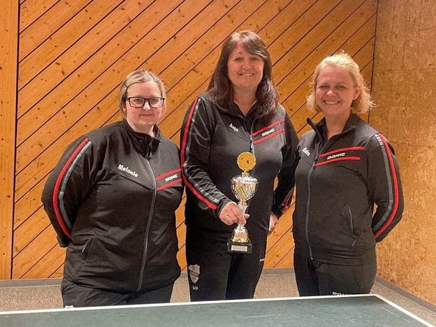 Schwürbitz/Ebersdorf-C. – Stolzer Erfolg für die Damen Melanie Imhof, Kathrin Herrmann und Anja Walter vom TV Schwürbitz beim westoberfränkischen Pokalwettbewerb. Nachdem das Trio mit einem 4:0-Sieg im Viertelfinale gegen den TTC Unterzettlitz den Sprung ins Final Four für Bezirksklassenteams geschafft hatte, wurde es nun Titelträger. Damit haben die Schwürbitzer Damen, die sich in der Bezirksklasse A auf Meisterkurs und den damit verbundenen Aufstieg in die Bezirksoberliga befinden, die Teilnahmeberichtigung für den nächsthöheren Wettbewerb erworben. Diese Pokalmeisterschaft des Verbandsbereichs Nordost findet am 22. März in Marktleuthen (Fichtelgebirge) statt.