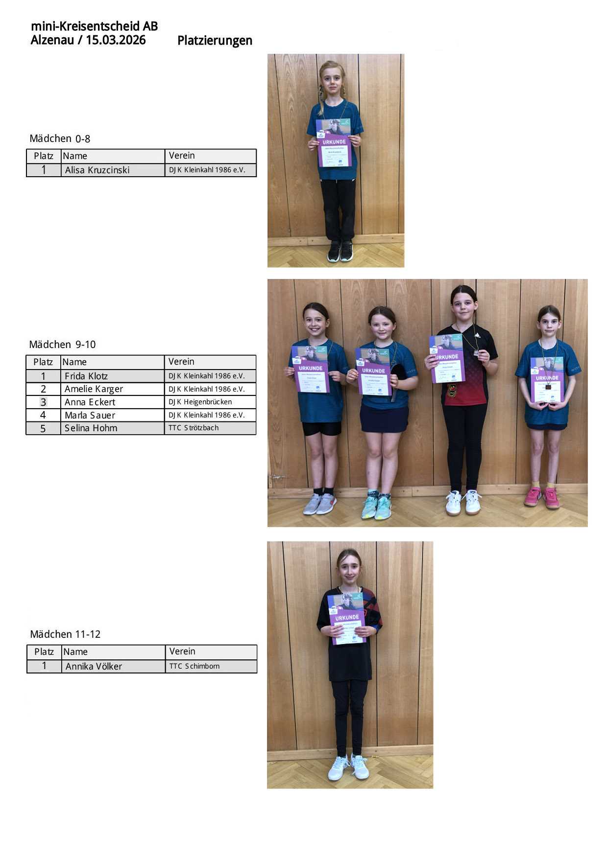 Platzierungen Mädchen, Alzenau, alle Fotos: Otto Glinzer.