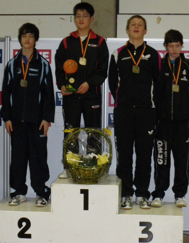 Schüler: Obwohl er sich in der Vorrunde eine Niederlage geleistet hatte, wurde Florian Schreiner (1. FC Hösbach) im Laufe der Titelkämpfe seiner Favoritenrolle gerecht. An Nummer zwei gesetzt erreichte der Unterfranke das Endspiel. Allerdings musste sich der Nationalspieler vor allem im Viertelfinale mächtig strecken, um Kilian Ort (TSV Bad Königshofen) in vier packenden Sätzen auf Distanz zu halten. Im Finale traf Schreiner auf den topgesetzten Liang Qiu (Baden-Württemberg), den er nach drei Sätzen zum Titelgewinn gratulieren musste. Der zweite Platz von Florian Schreiner ist aber der verdiente Lohn für eine wieder einmal gute Leistung. Nur knapp schrammte Kilian Ort, wie erwähnt, an einer Medaille vorbei. Der Unterfranke spielte ein starkes Turnier und wurde nach der knappen Niederlage gegen Schreiner Fünfter. Bis ins Achtelfinale kamen Marius Zaus (SpVgg DJK Effeltrich) und Tim Gottal (DJK Sparta Noris Nürnberg), die hier jeweils in drei Sätzen unterlagen. In der Vorrunde war Tobias Ehret (TV Nürnberg Jahn-Schweinau) ausgeschieden, hatte aber dem späteren Dritten Marc Rode aber am Rande einer Niederlage.