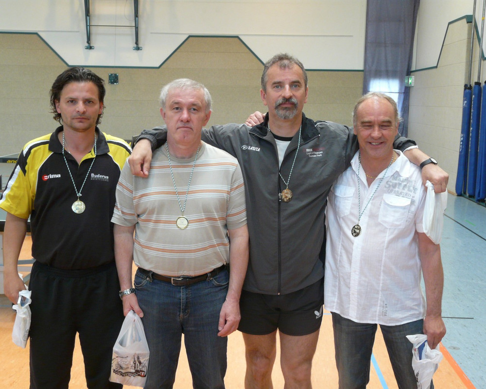 Senioren 50: Spannende Spiele gab es im Kampf um den Titel. Der FC Nordhalben konnte sich schließlich mit drei Siegen durchsetzen. Im entscheidenden Spiel wurde der TSV Musberg mit 4:3 Zähler besiegt. Zuvor gab es ein 4:1 gegen den TTC Weinheim und ein 4:2 über den TTV Schwarzenberg. Der FC Nordhalben startete mit Reiner Kürschner, Günter Fuhrmann, Rolf Eberhardt und Friedrich Tomaschko.