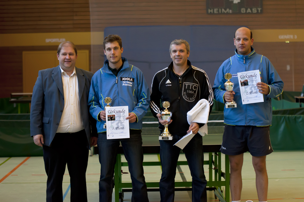 Ein packendes Kopf-an-Kopf-Rennen lieferten sich bei den Herren gleich mehrere Spieler. Am Ende lagen mit jeweils 9:2-Siegen Yevgenij Christ (TTC Wohlbach) und Alexander Yahmed (TSV Schwabhausen) gleichauf an der Spitze. Da beide auch das gleiche Satzverhältnis aufwiesen, musste der direkte Vergleich um Platz eins und zwei herangezogen werden. Diesen hatte der Wohlbacher mit 3:1 für sich entschieden und sich somit den Sieg beim Verbandsranglistenturnier 2010 gesichert. Dritter wurde Michael Plattner (TTC Fortuna Passau), der auf 8:3-Siege kam. Mit jeweils 7:4-Erfolgen belegten Jürgen Hegenbarth (TTC Fortuna Passau), Christoph Schüller (TSV Bad Königshofen) und Daniel Geist (SB Versbach) die Ränge vier bis sechs.