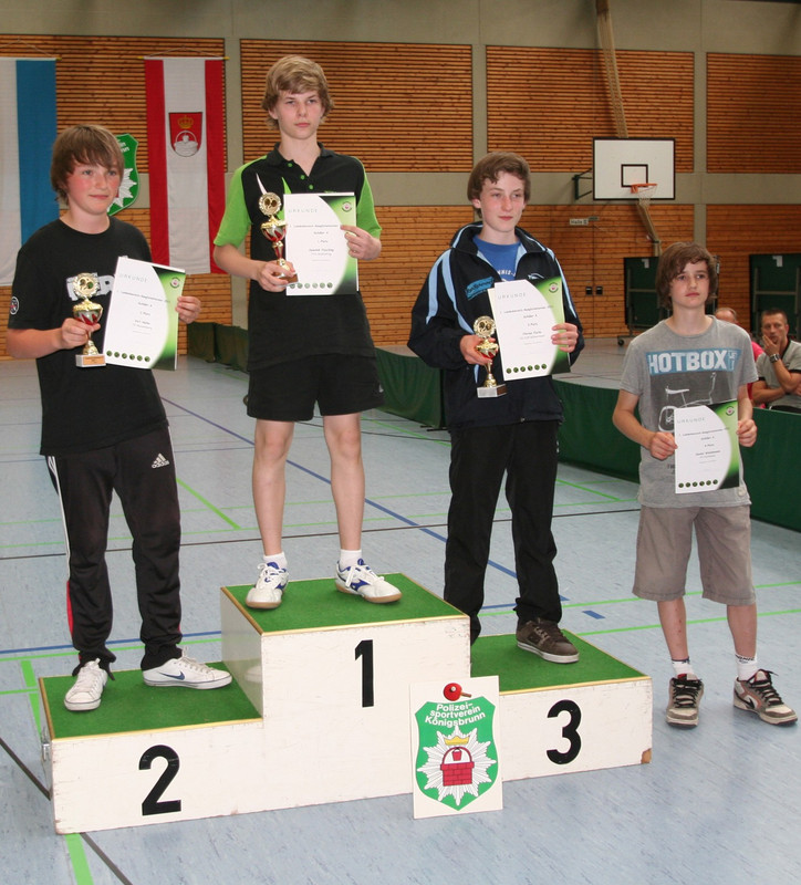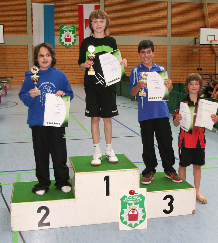 In Südbayern ging es bei den Jungen sehr spannend zu, denn am Ende lagen drei Spieler gleichauf an der Spitze. Fabian Nitzl (DJK SB Landshut) siegte dank des besseren Satzverhältnisses vor Thomas Ruhland (DJK SB Landshut) und Markus Bott (TV Boos). Bei den Mädchen war Sophia Kahler (SV Niederbergkirchen) bei nur einer Niederlage die Beste und siegte vor Eva-Maria Maier und Patricia Heiß (beide TSV Schwabhausen). Auch bei den Schülern A hatten drei Spieler die gleiche Anzahl von Siegen und Niederlagen, so dass auch hier das Satzverhältnis entschied. Dominik Fasching (TSV Gräfelfing) gewann vor Veit Heller (TV Hauzenberg) und Florian Fuchs (SV DJK Kolbermoor). Bei den Schülerinnen A blieb Katharina Teufl (DJK SB Landshut) ohne Niederlage und siegte vor Elisabeth Schanzer (TTC Fortuna Passau) und Aliyah Steinecke (SC Fürstenfeldbruck). Bei den Schülern B waren zwei Spieler gleichauf an der Spitze; Simon Röck (DJK Seifriedsberg) siegte knapp vor Boris Balki und Berkay-Ahmet Önder (beide SV DJK Kolbermoor). Bei den Schülerinnen B war Elisabeth Rollenmiller (SSV Höchstädt) die Stärkste und holte sich vor Laura d´Ambrosio (TSV Pentenried) und Sonja Schweikardt (SpVgg Riedlingen) den ersten Platz.