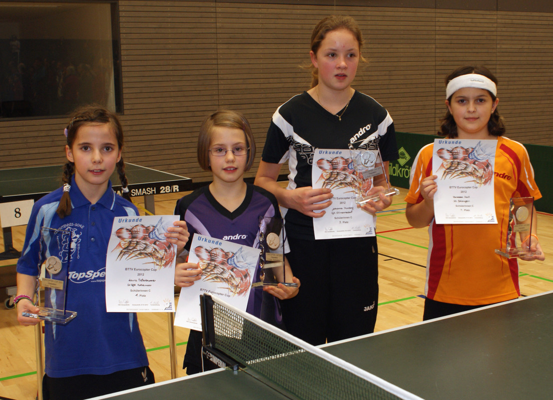 Laura Tiefenbrunner (SV DJK Kolbermoor) und Julius Wassmann (TV Altdorf) sind die Gewinner des BTTV Eurocopter Cups 2012, bei dem vierzig Mädchen und Jungen der Altersklasse Schüler C (U11) traditionell Anfang des Jahres beim VSC Donauwörth ihre bayerischen Meister ermitteln.