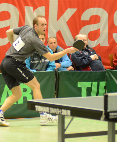 Bei den Bayerischen Meisterschaften in Burglengenfeld sah man Nico Christ (TV Hilpoltstein/2. Bundesliga) häufig hinten – in gehöriger Distanz zum Tisch nahe der Bande, gelegentlich auch in Bezug auf den Spielstand. Doch wann immer es ernst wurde, war der 30-Jährige da und hatte als Zweitgesetzter am Ende die Nase ganz vorn, gewann nach 2006, 2007 und 2008 seinen vierten Einzel-Titel bei Bayerischen Meisterschaften.