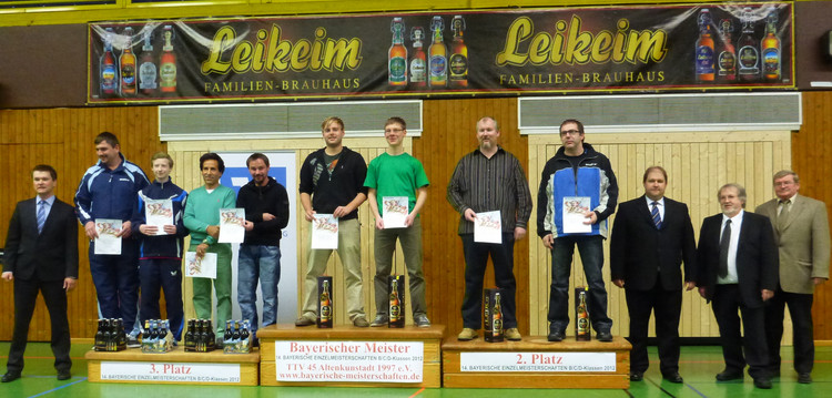 Herren-Einzel C: In der Einzel-Konkurrenz der Herren C-Klasse gelang Salim Jivraj vom oberbayerischen TSV Grünwald ein ganz besonderer Coup. Als Nachrücker kurzfristig »eingesprungen«, war der Ersatzmann am Ende der strahlende Champion. Vizemeister wurde Stephan Breier (TSV 1860 Weißenburg, MFR), Bronze ging an Oscar Probst (DJK Bad Höhenstadt, NDB) und Thomas Hochberger (SV Haimhausen, OBB).