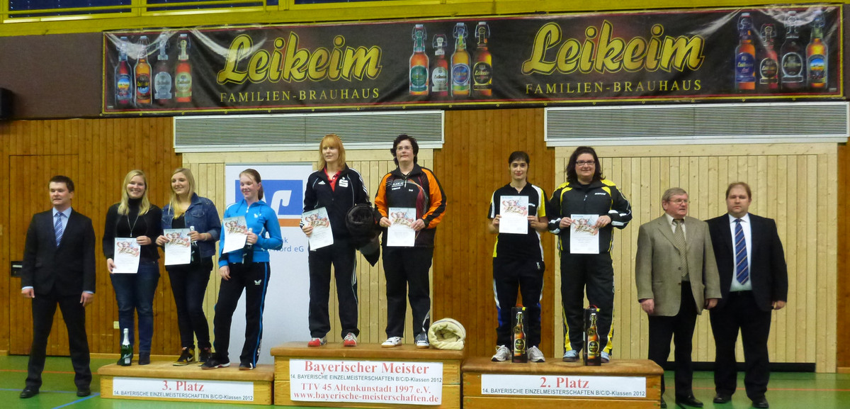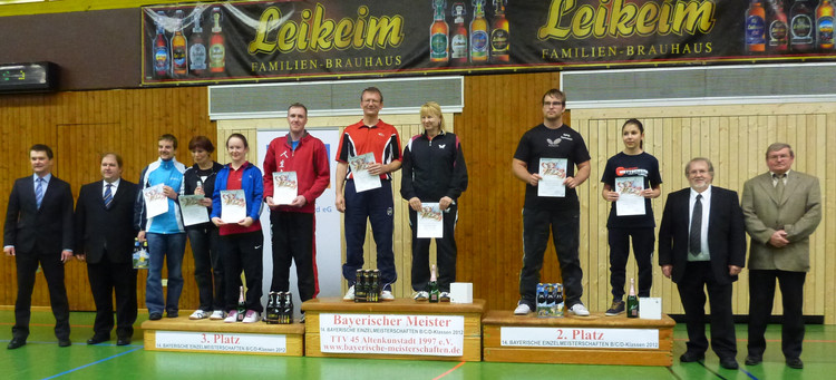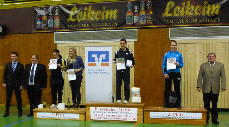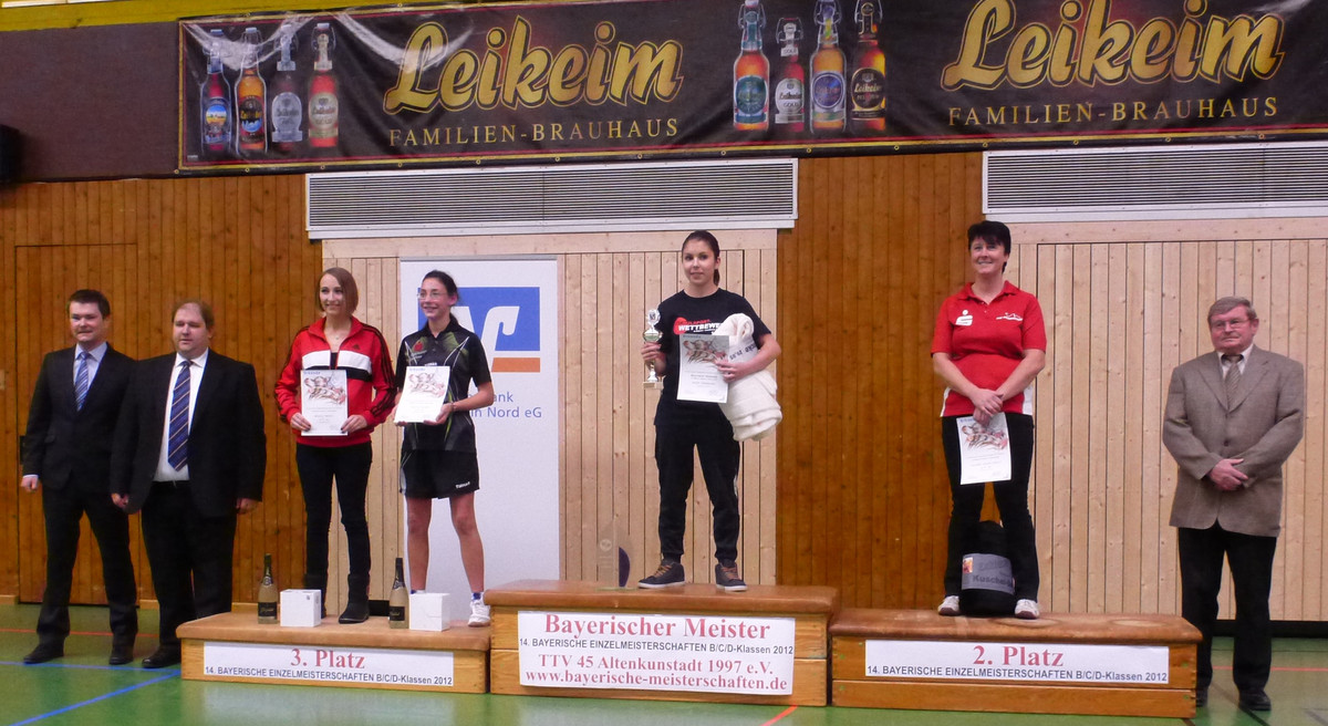 Die Bayerischen Einzelmeister der Leistungsklassen B, C und D 2012 heißen Milena Huber (SV Wacker Burghausen, Damen B), Matthias Kielmann (TSG 08 Roth, Herren B), Sonja Scheuerer (DJK Ettmannsdorf, Damen C), Salim Jivraj (TSV Grünwald, Herren C) und Alexander Birkholz (SC Regensburg, Herren D)! Sie waren bei den weißblauen Titelkämpfen im oberfränkischen Altenkunstadt die besten Solisten ihrer Klasse! In Doppel und Mixed durften in allen Klassen jeweils andere Spieler/innen jubeln: