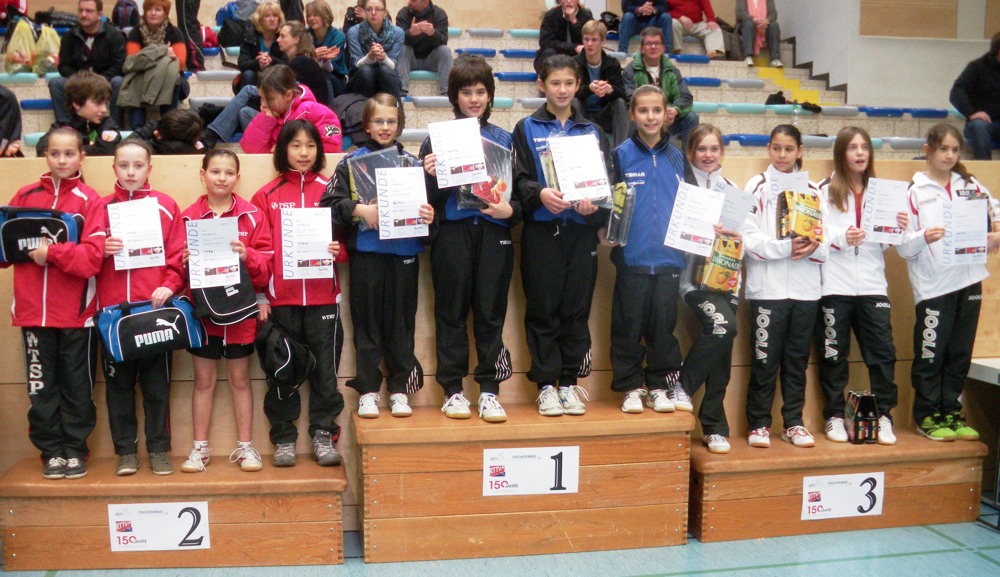 Bayerns U12-Auswahlen haben dem BTTV beim DTTB Future Cup in Worms alle Ehre gemacht: Die Schülerinnen-Mannschaft (Gaia Monfardini/SV DJK Kolbermoor, Franziska Schreiner/TV Hofstetten, Laura Tiefenbrunner/SV DJK Kolbermoor und Sophia Deichert/RV Viktoria Wombach) gewann den Ländervergleich souverän vor Titelverteidiger Baden-Württemberg und der Vertretung des Westdeutschen Tischtennis-Verbandes/WTTV. Die Schüler (Jürgen Haider/TSV Schwabhausen, Bastian Herbert/TV Etwashausen, Felix Wetzel/SV DJK Kolbermoor und Hannes Hörmann/TV Hilpoltstein) freuten sich über Platz zwei hinter der favorisierten WTTV-Auswahl und vor Hessen. »Die Mädels und die Jungs haben ein super Turnier gespielt und auch mit ihrem Auftreten den BTTV hervorragend vertreten«, freute sich Verbandstrainer Cornel Borsos. Ein Sonderlob verdienten sich Franziska Schreiner und Laura Tiefenbrunner, die im gesamten Turnierverlauf ohne Niederlage blieben.