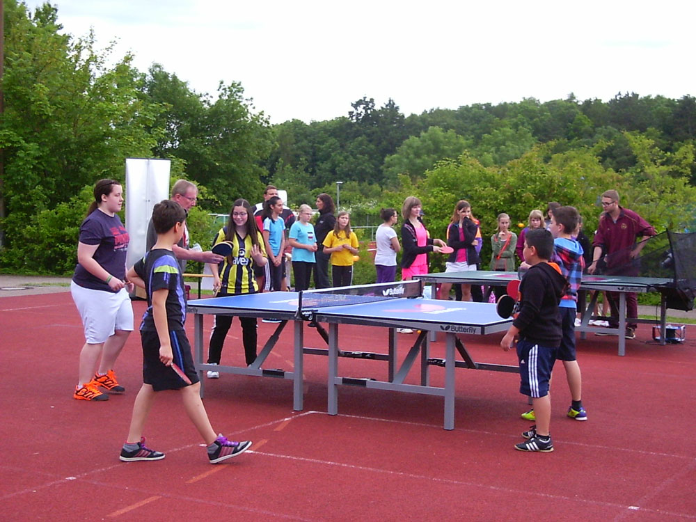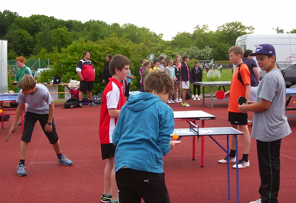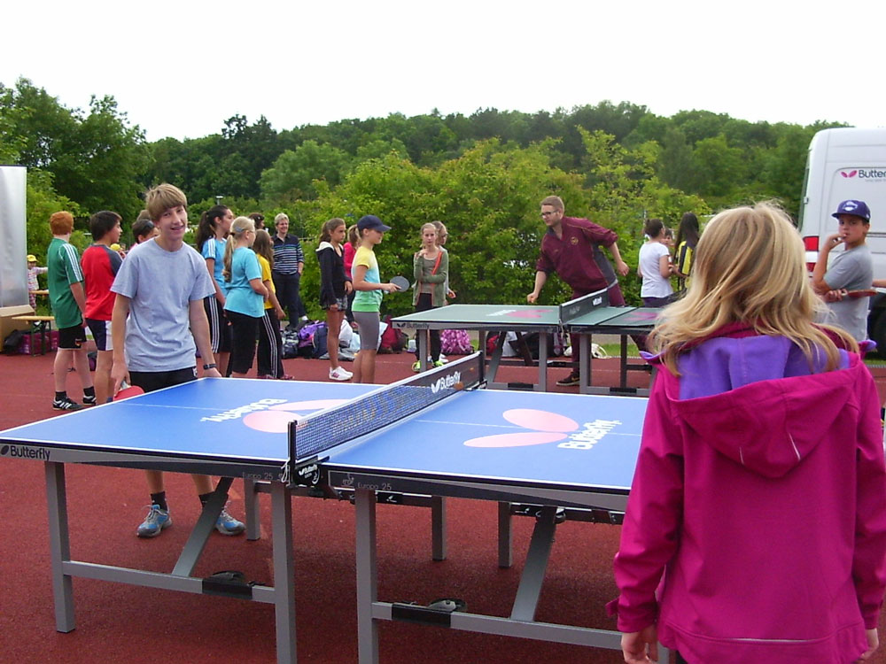 Der Tischtennis-Bezirk Mittelfranken – unterstützt vom ortsansässigen TSV 2000 Rothenburg ob der Tauber – war mit dem DTTB-Schnuppermobil vor Ort. Gegen 11:30Uhr musste leider der TT-Roboter vor dem zunehmenden Regen in Sicherheit gebracht werden; an den Wettkampf-, Midi- und Minitischen ging aber der Spielbetrieb munter weiter.