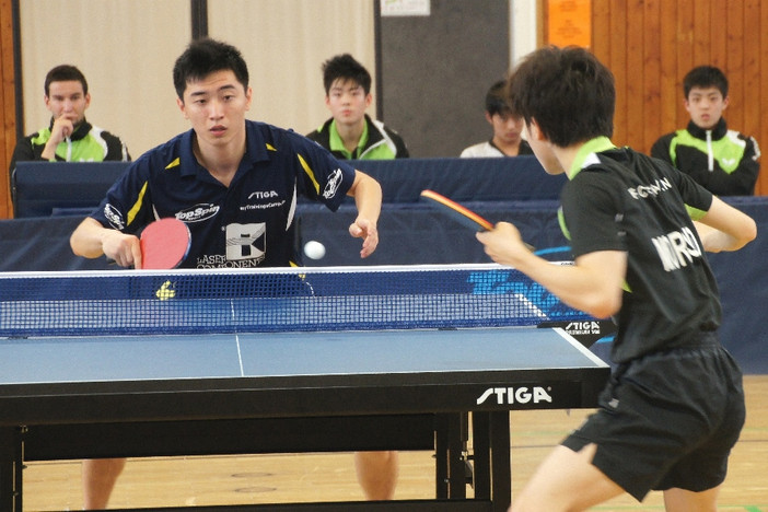 Aufsteiger TSV Bad Königshofen trat die Reise nach Fürstenfeldbruck aus Richtung Österreich an, wo die Unterfranken am Vortag beim Internationalen Dr.-Schweizer-Gedächtnisturnier in Braunau kräftig abräumten: Routinier Richard Vyborny (42), die neue Nummer eins der Unterfranken, entschied den Einzelwettbewerb für sich und die jungen Eigengewächse Kilian Ort (17) und Christoph Schüller (21) ergänzten sich im Doppel zum Turniersieg. Vyborny verabschiedete sich aus Braunau allerdings planmäßig für ein paar Tage in seine tschechische Heimat. So bildete der 20-jährige Taiwanese Chun-Lin Lee, die neue Nummer zwei, zusammen mit Ort und Schüller das Bad Königshofer Pokal-Trio. Ohne ihren Leitwolf konnten die drei Bundesliga-Rookies, die via Freilos ins Halbfinale gelangten, gegen Frickenhausen zwar nicht gewinnen (1:3), zumindest aber andeuten, dass kein Team vor dem jungen Aufsteiger sicher sein kann. Beim Spielstand von 1:1 - Lee hatte zum Auftakt 3:2 gegen Sel gepunktet, Schüller trotz bravouröser Gegenwehr gegen Morizono in drei Sätzen den Kürzeren gezogen - avancierte das Duell zwischen den beiden Jugend-Nationalspielern Kilian Ort und Liang Qiu zum Knackpunkt der Partie: Dass es Ort verpasste eine fein herausgespielte 2:0-Satzführung und vier Matchbälle in Durchgang drei (10:6) zur neuerlichen Führung ins Ziel zu bringen, ebnete Frickenhausen den Weg durch Morizono zum Finaleinzug zu verwandeln. Eine Chance, die sich der Japaner beim 3:0 gegen Lee nicht nehmen ließ.