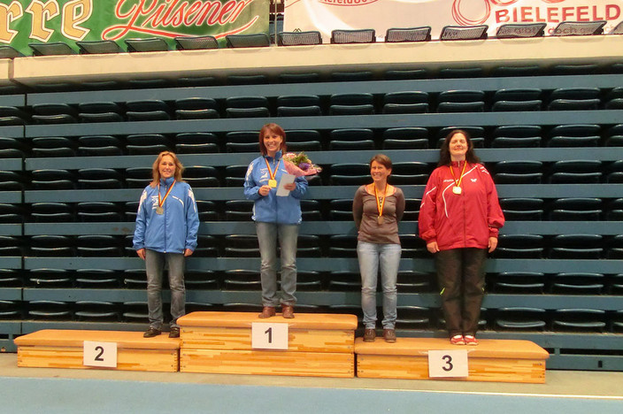 Herausragend unter den BTTV-Damen war ... nein, diesmal nicht Moni Dietrich, sondern deren Vereinskollegin und Bezwingerin Beate Greib-Trapp (TSV Schwabhausen). Nur sie schaffte es im Damen-Einzel auf den Thron. Im innerbayerischen Finale der AK 50 vereitelte die 52-Jährige einen Zweifach-Triumph von Gerti Dietrich (DJK SB Regensburg), die mit Bettina Balfoort (WTTV) das beste Doppel des Turniers bildete. Für das Ende der beeindruckenden Siegesserie von Monika Dietrich hatte Greib-Trapp im Viertelfinale gesorgt, als ihre gute Freundin, Vereinskameradin und Doppelpartnerin mit 3:1 bezwang. Es war Dietrichs erste DM-Einzelniederlage seit dem Halbfinale der Titelkämpfe 2010 Berlin. In den Jahren 2011, 2012 und 2013 hatte Dietrich den Einzel-Titel gewonnen.