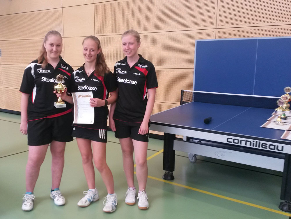 Mit jeweils nur sechs Teilnehmern ermittelten die Bayernligisten der Mädchen und Jungen ihre Cupsieger an nur einem Tag. Bei den Mädchen wurde die Mannschaft des TV Hofstetten ihrer Favoritenrolle souverän gerecht. In der Aufstellung Svenja Horlebein, Anna-Luisa Herrmann und Lea Fath gewannen die Unterfränkinnen ihre Gruppenspiele gegen die TSG Roth (5:0) und den stark ersatzgeschwächten Mit-Favoriten SC Fürstenfeldbruck (5:2) ebenso deutlich wie das Finale mit 5:1 gegen den TTC Langweid (Louisa Keppeler, Eva Bickel, Anastasia Kitaev). Die Schwäbinnen hatten sich in Vorrundengruppe B gegen die Gastgebermannschaft vom TV Feldkirchen (5:1) und die Oberfranken-Vertretung der SpVgg Hausen (5:2) behauptet. Bronze ging an das Trio aus Fürstenfeldbruck.