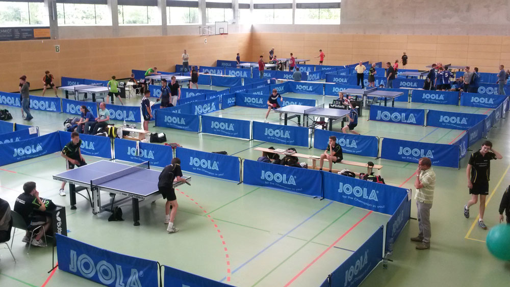 Große Spannung brachte die Jungen-Konkurrenz in die Feldkirchener Mangfallhalle. Das Team des TV 1860 Nürnberg Jahn-Schweinau (Sascha Korn, Alex Makowski, Sebastian Ott) triumphierte nach klaren Gruppensiegen über den oberbayerischen TSV Pentenried (5:0) und den schwäbischen TSV Königsbrunn (5:0) im Finale hauchdünn mit 5:4 gegen Oberfranken-Vertreter TSV Untersiemau (Gabriel Funk, Lukas Hennemann, Simon Murmann), den Erstplatzierten der Vorrundengruppe A. Auf Grund des besseren Spielverhältnisses hatten die Untersiemauer dort den oberbayerischen TSV Gilching-Argelsried und Bayernliga/Nord-Meister SB Versbach aus Unterfranken hinter sich gelassen. Gesamtrang drei ging an den TSV Pentenried.