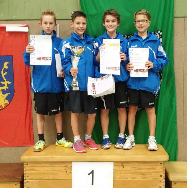 Super gemacht! In der Formation Mike Hollo (SV DJK Kolbermoor), Hannes Hörmann (TV Hilpoltstein), Petros Sampakidis (TuS Fürstenfeldbruck) und Tom Schweiger (DJK Altdorf) ist es Bayerns U12-Auswahl der Schüler gelungen, ihren Titel beim DTTB Future Cup vor der Vertretung des WTTV und Niedersachsen zu verteidigen. Und wie! Die Gefahr einer Niederlage bestand nie: 5:0 (gg. Sachsen), 5:0 (gg. das Saarland), 4:1 (gg. Hamburg), 4:1 (gg. WTTV), 4:1 (gg. Hessen) und 5:0 (gg. Niedersachsen) lauteten die jeweils klaren Endstände in Vor- und Endrunde. Ein Sonderlob von Verbandstrainer Cornel Borsos verdiente sich der zweitjüngste der Mannschaft, Mike Hollo: »Mike spielte konstant große Klasse und blieb im gesamten Turnierverlauf ohne Niederlage.«