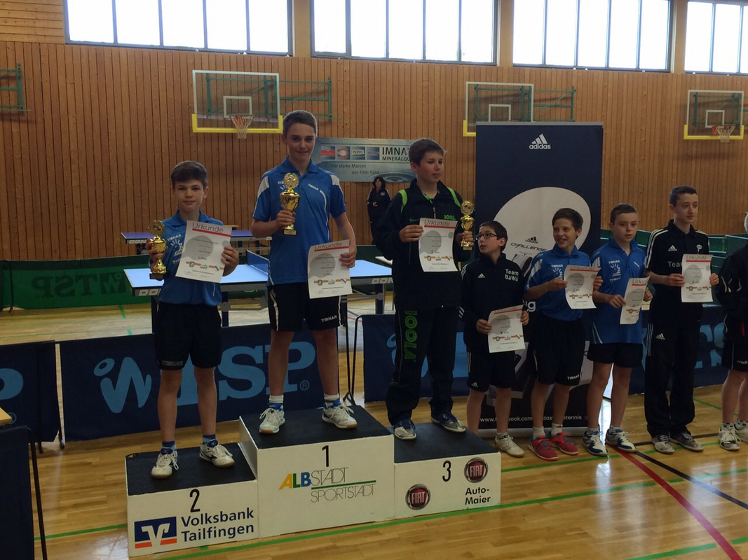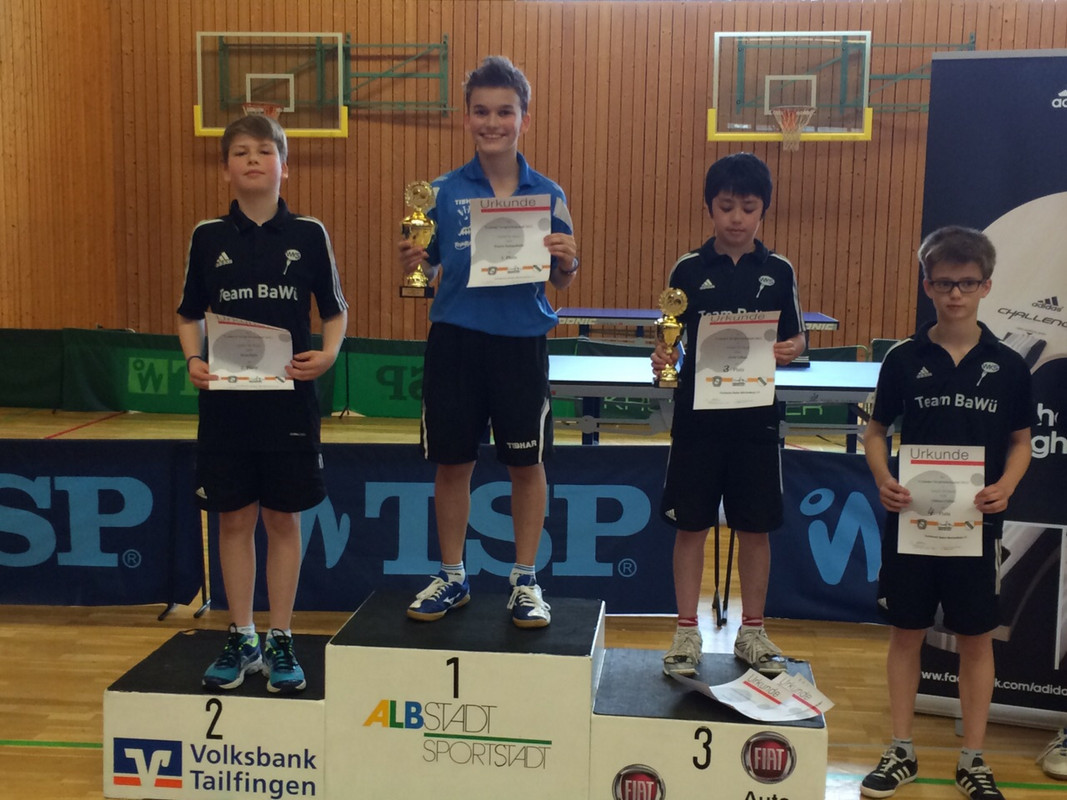 Daumen hoch für unsere bayerischen B-Schülerinnen und Schüler (U13) sowie ihre Coaches Cornel Borsos, Krisztina Toth, Tian Zichao, Zsolt Hollo und Manuel Hofmann, die uns beim Fünf-Länder-Vergleich mit den DTTB-Landesverbänden Baden-Württemberg, Hessen, Niedersachsen und WTTV in Albstadt-Tailfingen alle Ehre machten! Nach dem souveränen Gewinn der Team-Gesamtwertung durch drei erste Plätze und einen zweiten Rang der BTTV-Auswahlen (wir berichteten), kam »Weißblau« auch in den vier Einzelbewerben zu großen Erfolgen. Herausragend waren die Titelgewinne durch Daniel Rinderer (Schüler B1) und Petros Sampakidis (Schüler B2), der zweite Platz von Felix Wetzel (Schüler B1) und der dritte Rang von Naomi Pranjkovic (Schülerinnen B2). BTTV-Leistungssportreferentin Krisztina Toth war auf ganzer Linie zufrieden, happy und freilich auch ein wenig stolz: »Das war ingesamt ein sehr starker Auftritt der gesamten Mannschaft, für den wir auch von den anderen Verbänden viel Lob bekamen. Die Kinder haben super gespielt, haben sich gegenseitig toll unterstützt und freuen sich nun schon auf anstehenden Kaderlehrgang.«